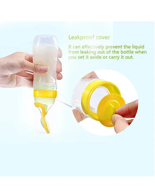 Silicone Baby Feeding Bottle with Squeeze Spoon for Milk, Cereal, and Fruits